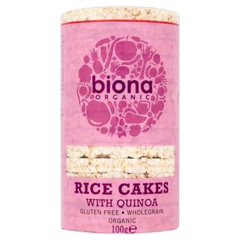 Organic rice cakes containing protein-rich organic quinoa - the perfect healthy snack.