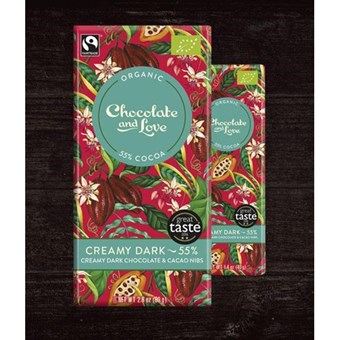 Chocolate and Love - 'Creamy Dark' - Organic/Fairtrade creamy dark chocolate with cacao nibs 55% - 80g bar